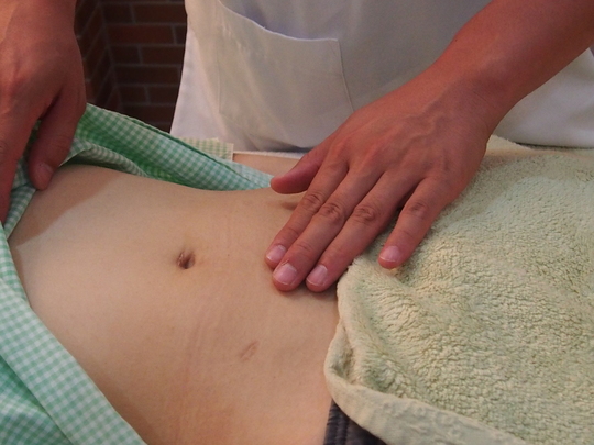 お腹の固さや冷えなどをみて脈診と同じく様々な体の問題を診ていきます。脈やツボの反応と比較して内容に矛盾がないかを確かめます。
